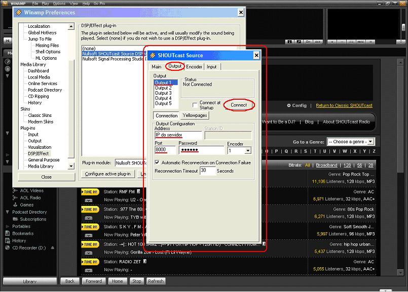 Como instalar os utilitários de DJ do shoutcast no windows O DJ (quem faz a transmissão da rádio) deverá instalar o winamp e um plugin em seu computador. Com o plugin ativado será enviado para a rádio o que estiver sendo tocado no winamp, podendo ser mp3's ou algum INPUT do computador (ex: microfone ou auxiliar). Etapa 1) Baixando os arquivos necessários: * Baixar Winamp: 1- Acesse http://www.winamp.com/ e clique em "Free Download". ![]() 2- Informe seu e-mail no local solicitado e clique em "Download Winamp- Free". ![]() 3 - Clique em "salvar arquivo". ![]() * Baixar "SHOUTcast broadcast tools para Winamp 5.x": 1- Acesse http://www.shoutcast.com/download. ![]() 2- Em " Broadcasting through a third-party server or stream hosting solution: Using Winamp with the SHOUTcast Radio DSP Plug-in", clique em "here". ![]() 3- Clique em "salvar arquivo". ![]() 4- Aguarde a conclusão do Download. ![]() Etapa 2) Instalando os programas baixados: * Instalando o Winamp: 1- Clique em "Next". ![]() 2 - Clique em " I Agree". ![]() 3- Clique em "Next". ![]() 4- Clique em "Next". ![]() 5- Clique em "Next". ![]() 6- Clique em "Install". ![]() 7 - Aguarde a conclusão. ![]() ![]() 8- Clique em "Finish" ![]() 9 - Abrirá a tela "Winamp Setup". Clique em "Next". ![]() 10 - Clique em "Next". ![]() 11- Clique em "Finish" ![]() 12- Aguarde a conclusão. ![]() * Instalando o SHOUTcast broadcast: 1- Abra o arquivo em seu computador. Na primeira tela de instalação, clique em "Next". ![]() 2- Clique em "Next". ![]() 3- Clique em "Next". ![]() 4- Na caixa de diálogo, clique em "sim". ![]() Etapa 3) Configurando o Winamp: 1- Abra o programa (Winamp) e pressione as teclar Ctrl+P. - Na tela que se abrirá (Preferencias), no menu lateral vá em "Plug-ins" e escolha "DSP/Effect"; - Na tela central escolha "Nullsoft SHOUTcast Source DSP v1.9.0 [dsp_sc.dll] ![]() Uma janela será aberta com o nome "SHOUTcast source". nesta janela clique na aba "Input" e escolha o dispositivo de entrada (normalmente winamp). ![]() Clique na aba Encoder, escolha Encoder 1 e escolha as opcoes de bitrate. ![]() Clique na aba output e: - escolha output 1; - defina o IP de seu servidor; - Informe a porta; - Informe a senha; - clique no botao "Conect". ![]() Confirme que seu DNAS está rodando e que você está tocando arquivos MP3 no Winamp, ou que a entrada da placa de som e mixers estão correteamente configurados (se está utilizando a placa de som em modo de entrada) e então clique em connect para conectar ao seu servidor e começar a enviar o áudio. Outras dúvidas relacionadas: Nenhum item encontrado. Está dúvida pertence aos seguintes grupos: Streaming |